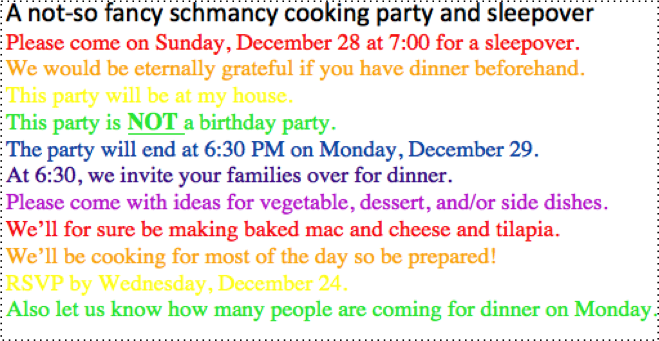 For winter break, he asked to have a cooking party.