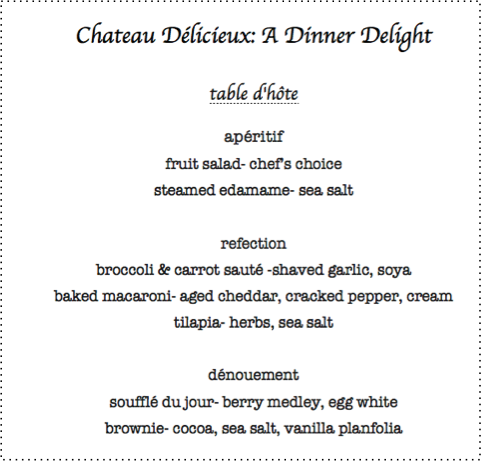 And none of the guests brought vegetable suggestions; only desserts. The good news is that we were able to settle on a few good choices to accompany the sugar and carbs. Within ten minutes of everyone arriving, we had agreed on a menu. Then I sent the chefs downstairs to watch a movie so I could draft a grocery list.