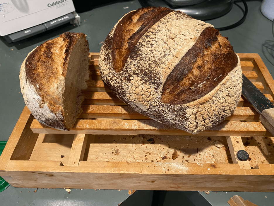 Or sourdough something. We have starter in a jar on the counter, and last week I successfully baked a loaf of bread using yeast water, which took a week and a half to establish: figs, water, sugar and salt, much shaking and resting, and a good bit of sheer faith. Would it work? No idea, until the dough actually bubbled and rose, and the loaf emerged from the oven looking like … well, bread.